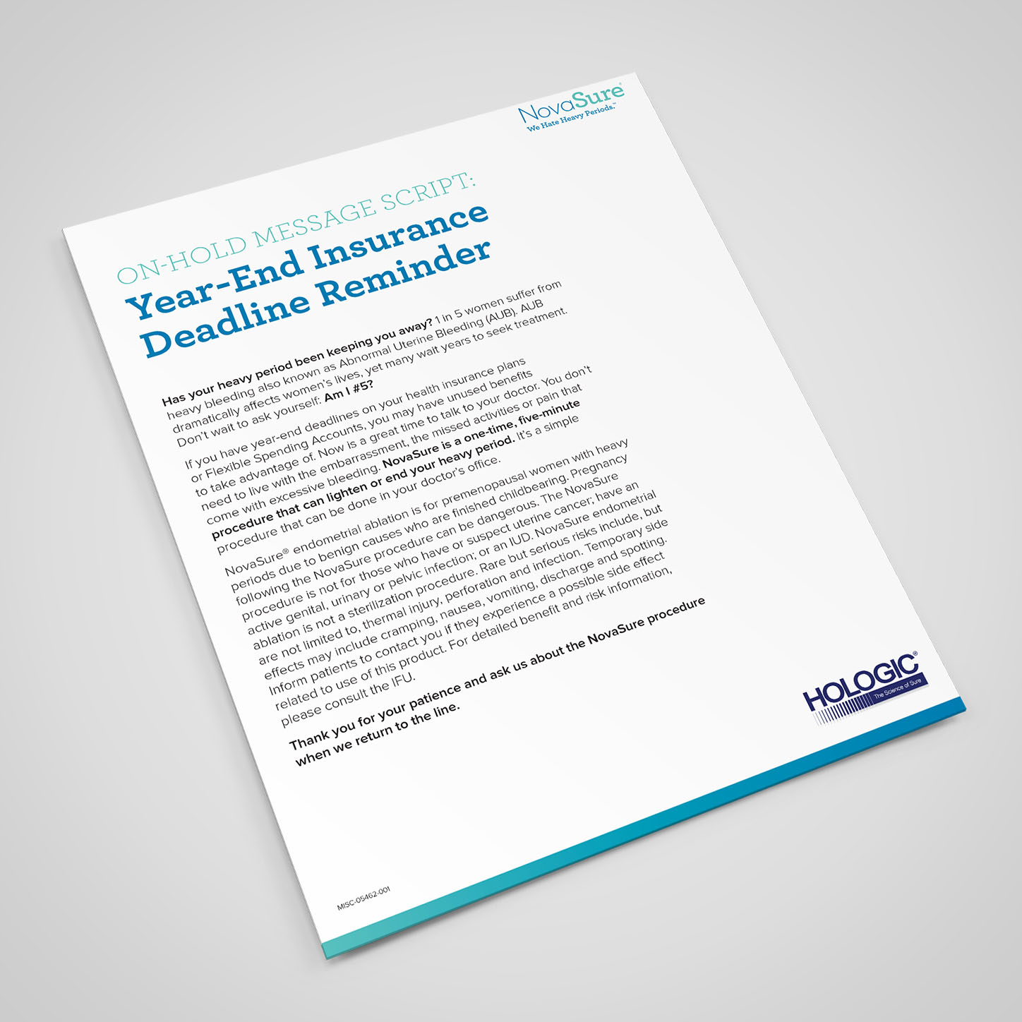 Patient brochure on abnormal uterine bleeding and the NovaSure procedure.